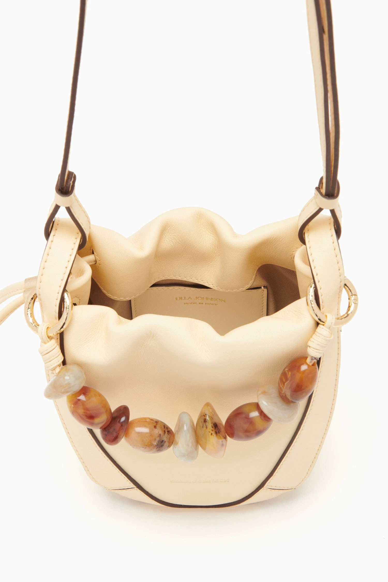 The Lee Pouch is a mini crossbody silhouette crafted in Italy from luxurious calfskin leather in a light yellow hue. This drawstring-style bag features an adjustable crossbody strap and internal pocket to fit your everyday essentials. Finished with a removable stone handle.